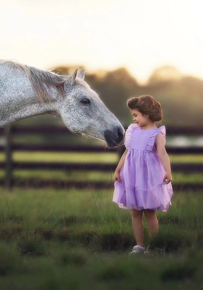 Sweetness has just flown in and she’s wearing our Alice dress with butterfly wings! The perfect combination of pleating and ruffles, this poly organza dress also comes with whimsically placed butterfly wings and a big self tie bow in back. She will be the talk of the town in this sweet frock. 100% poly self, 100% soft cotton lining. Machine wash, hang dry.