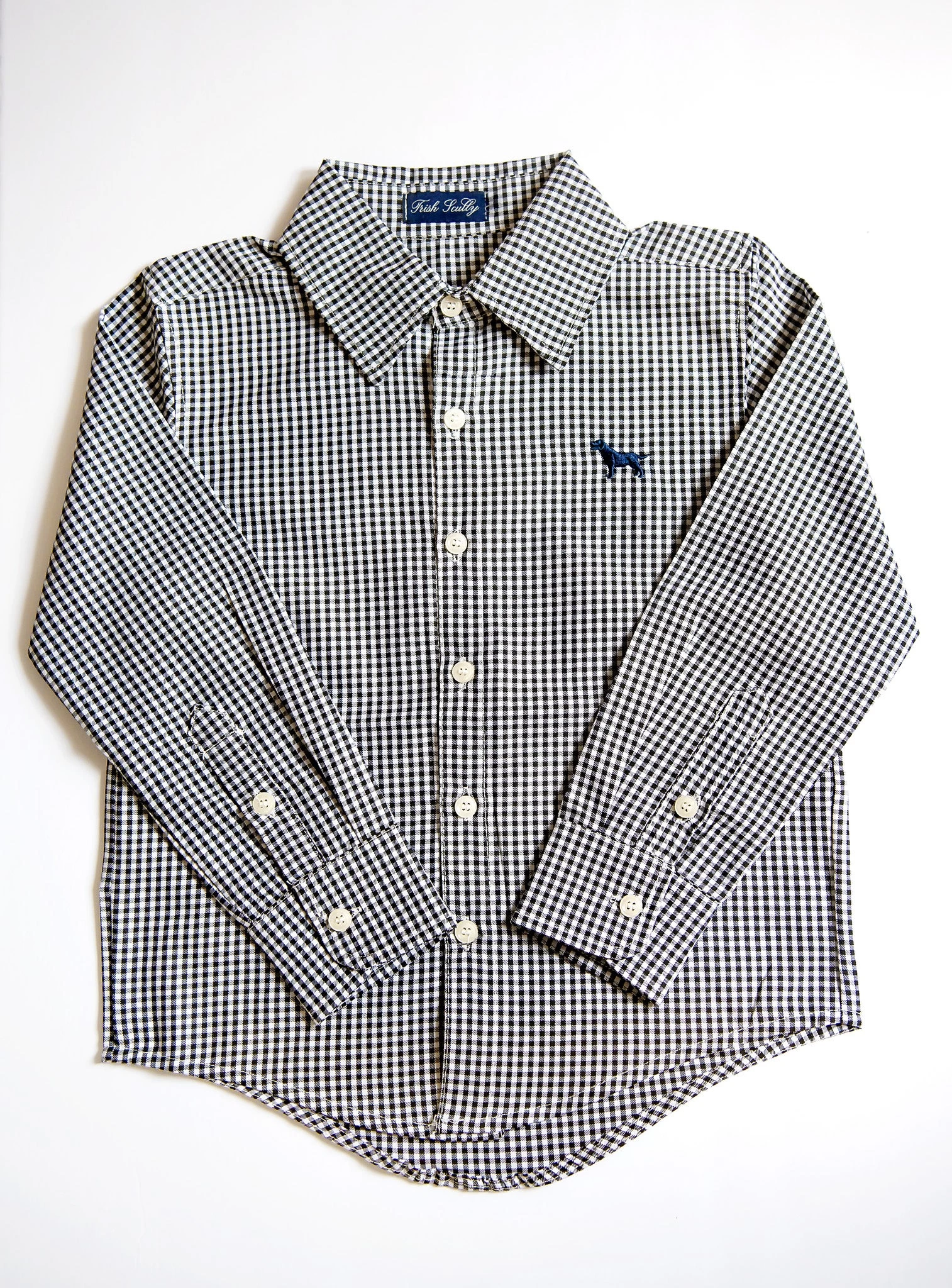 The most darling button-down for your little man! This classic long sleeve is made to be paired with just about anything, and finished off with a dog emblem. Pairs wonderfully with any of our suits or pants!