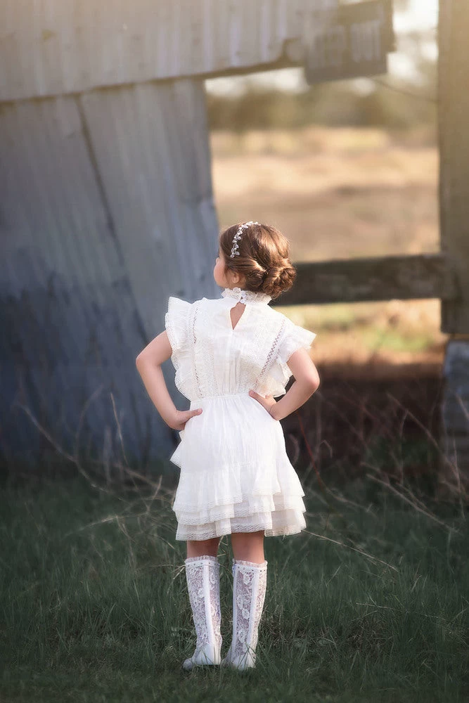 Our most amazing boot to date, these lace boots are to die for! This sheer lace boot has so many details, you will be wanting a pair for yourself! Lace details and chic metal studs make up the front boot, while a side zip makes getting them on and off super easy. The lace is soft and not scratchy. These are so darling with our dresses, truly a photographers dream. Lace & PU upper, rubber sole, side zip.