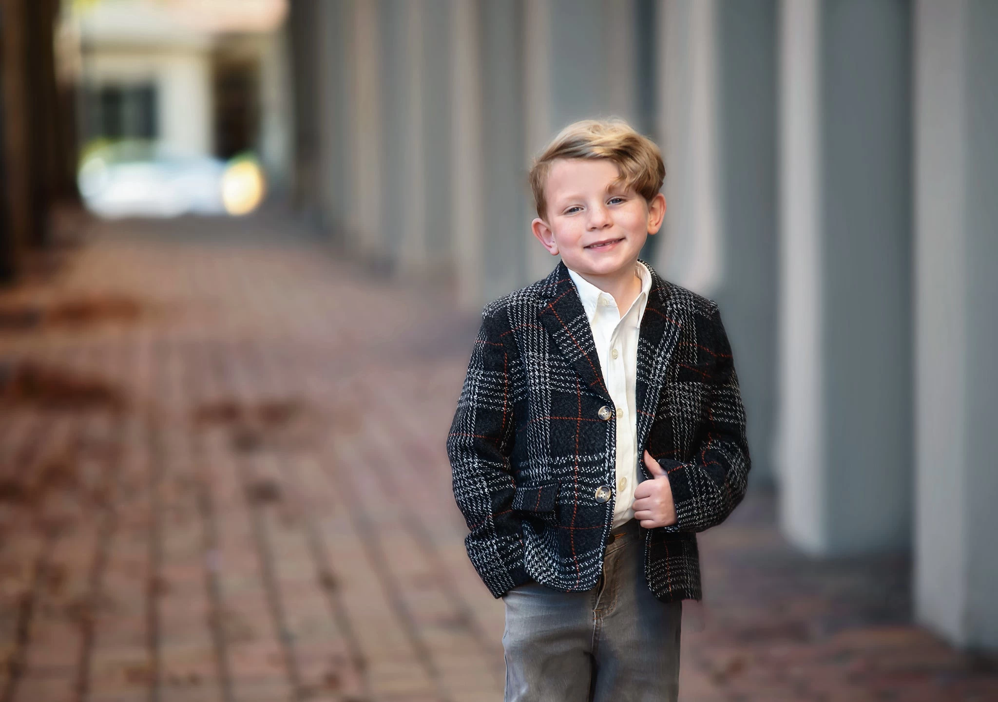The most darling blazer to cap off his outfit! This relaxed-fit blazer features two front pocket flaps and is finished off with two front buttons.